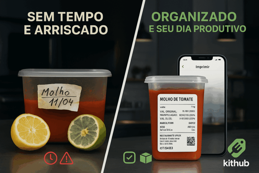 Esqueça etiquetas feitas à mão. Com o Kithub, você ganha tempo, reduz desperdícios e mantém tudo em dia com a Anvisa — direto do celular.